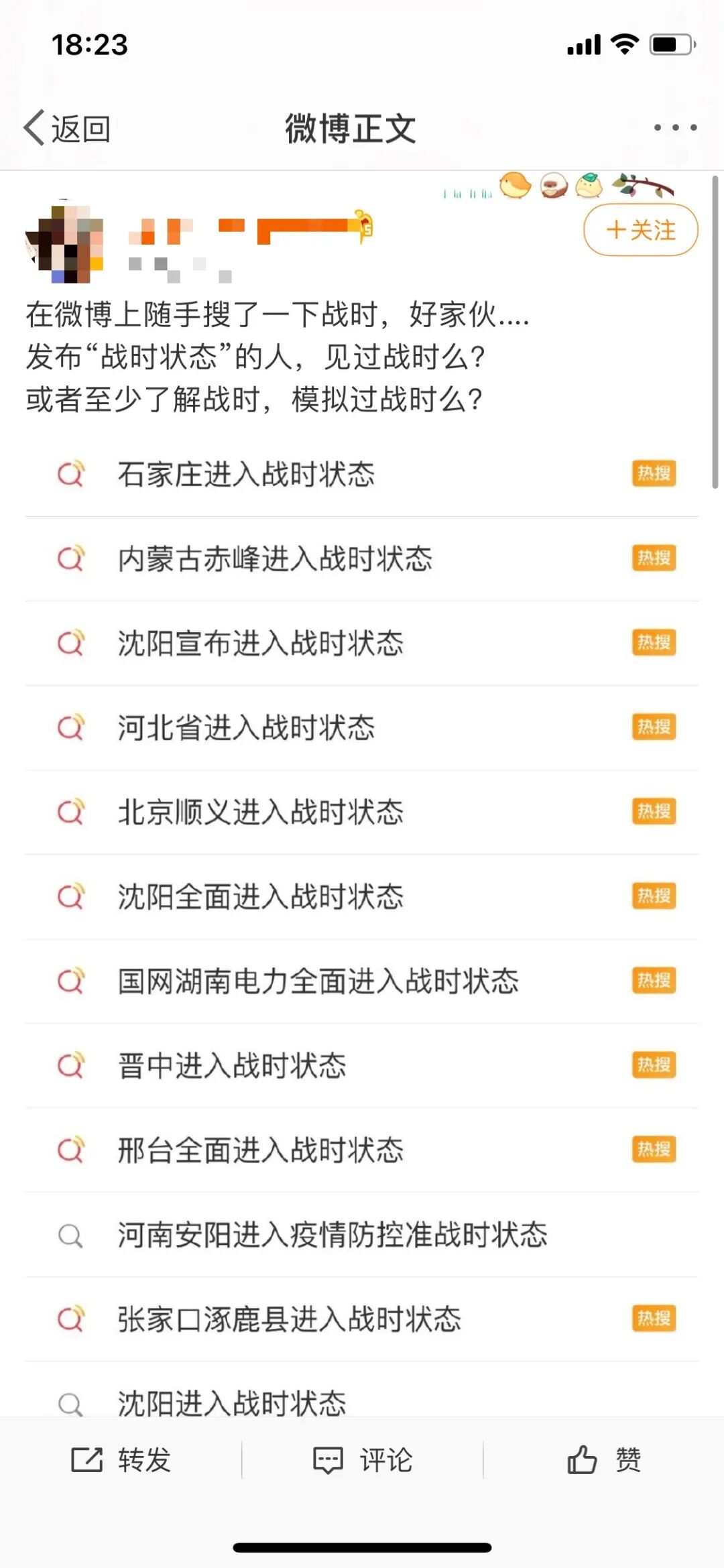 还有网友诘问:“在微博上随手搜了一下战时,好家伙……发布‘战时状态’的人,见过战时么?或者至少了解战时,模拟过战时么?”
