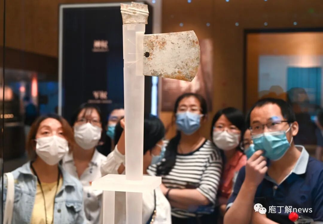 2020年5月29日,浙江杭州良渚博物馆内的玉钺组件引人驻足。