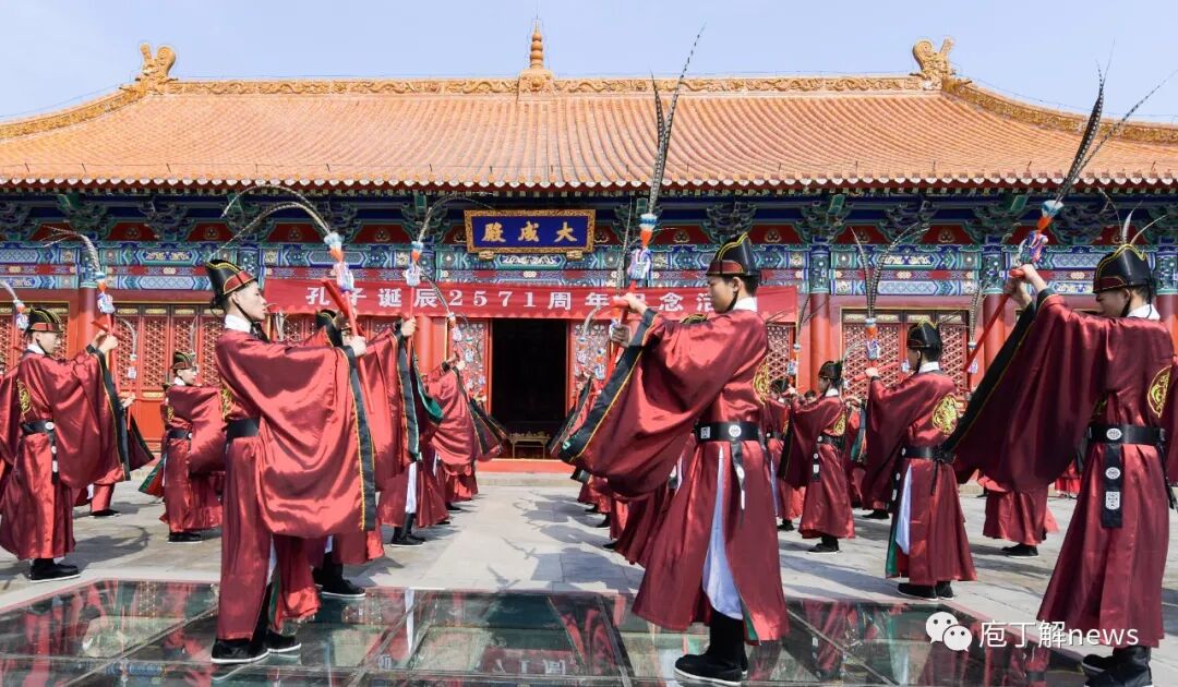 2020年9月28日,山东济南府学文庙,学生表演佾舞纪念孔子诞辰2571周年。