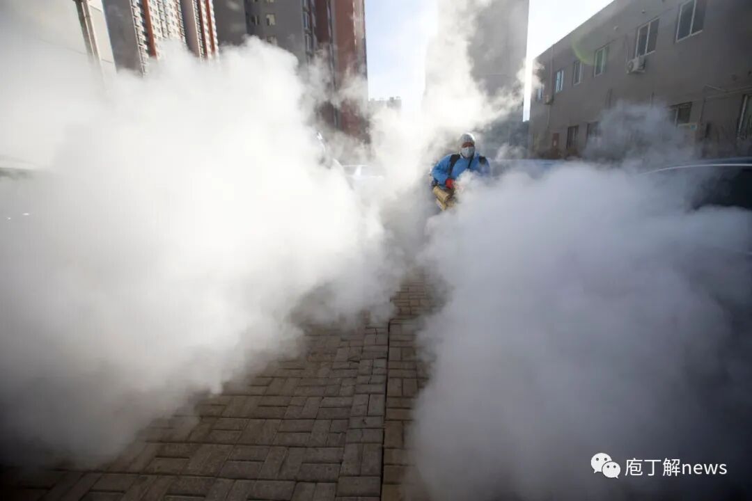 2020年2月15日,山西太原,蓝天救援队的队员在社区进行消杀作业。