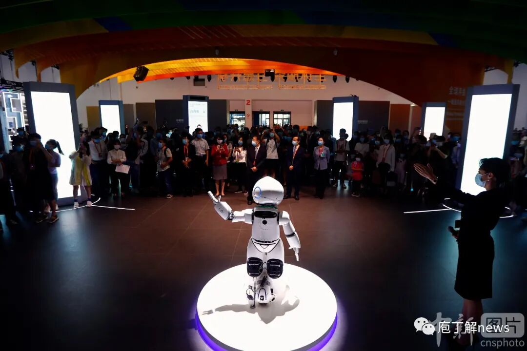 2020年9月5日,2020年服贸会综合展区,机器人为参观者介绍展品。