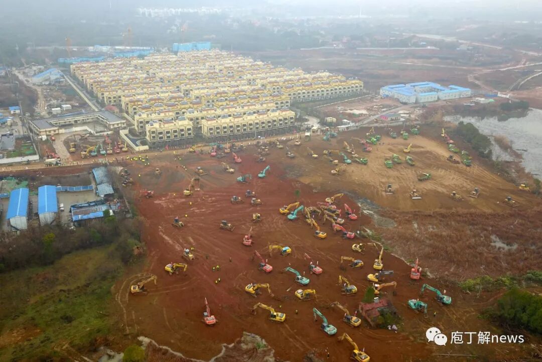 2020年1月24日,航拍施工现场。当日,位于武汉市蔡甸区的武汉“小汤山”模式专门医院开建。