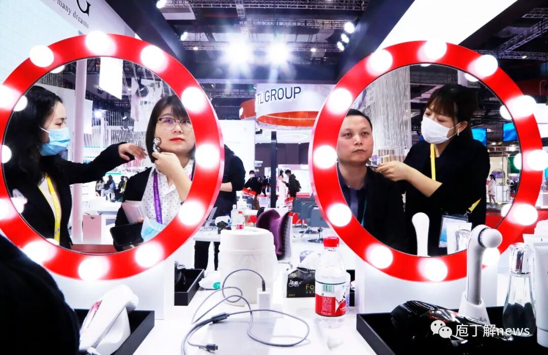 2020年11月8日,上海,参观者在第三届中国国际进口博览会上体验新款美容仪。