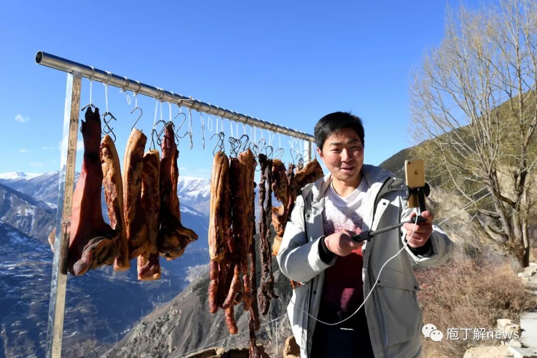 2020年1月8日,四川阿坝州小金县麻足寨甘家沟村扶贫第一书记张飞正在进行直播。当地经营的藏家“云端餐厅”香飘四方,带火了甘家沟村农产品销售。