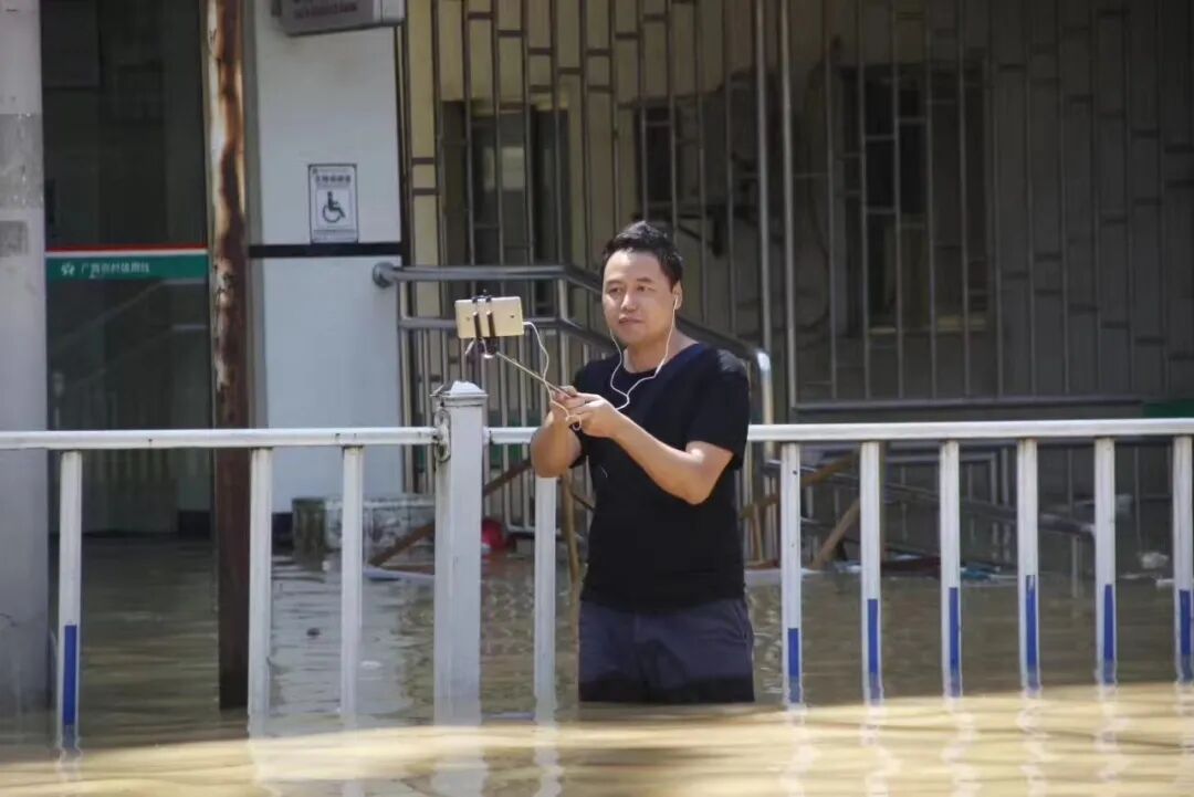 ▲2019年7月10日,蒙鸣明直播洪峰过境柳州。