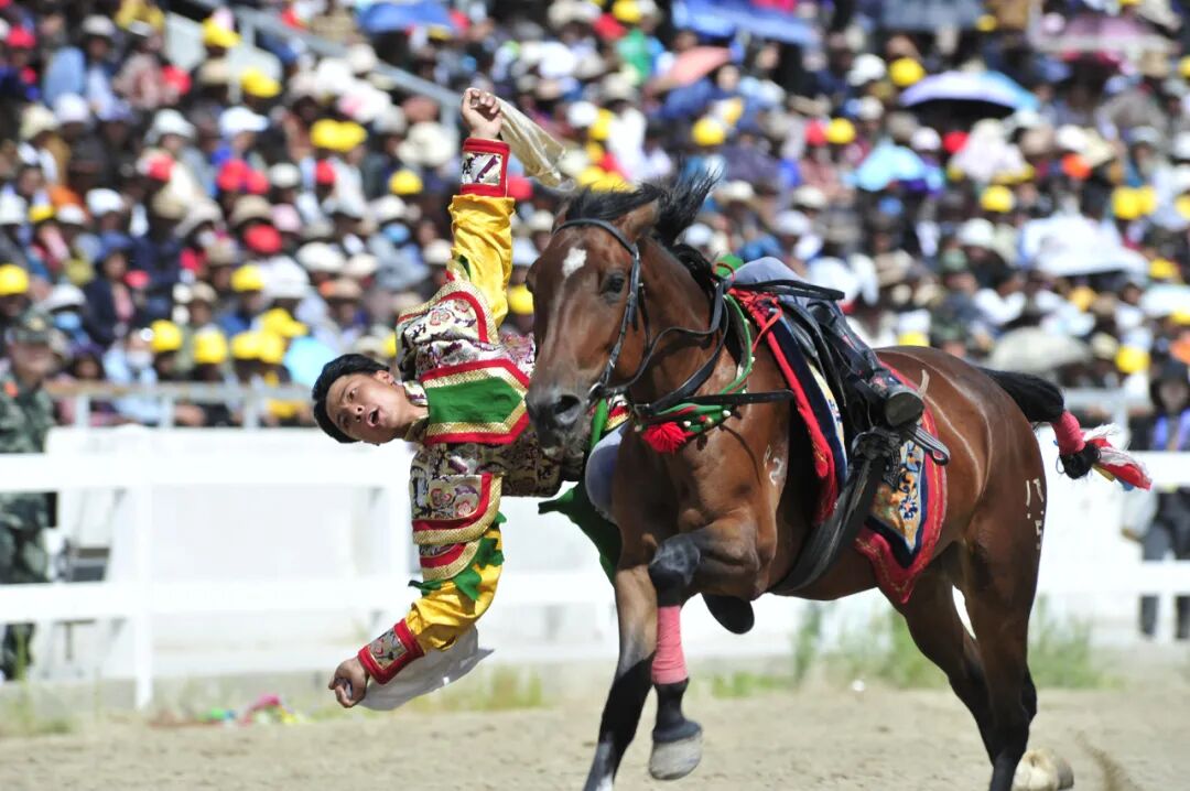▲图为雪顿节拉萨市赛马场内的马术表演 贡嘎来松 摄