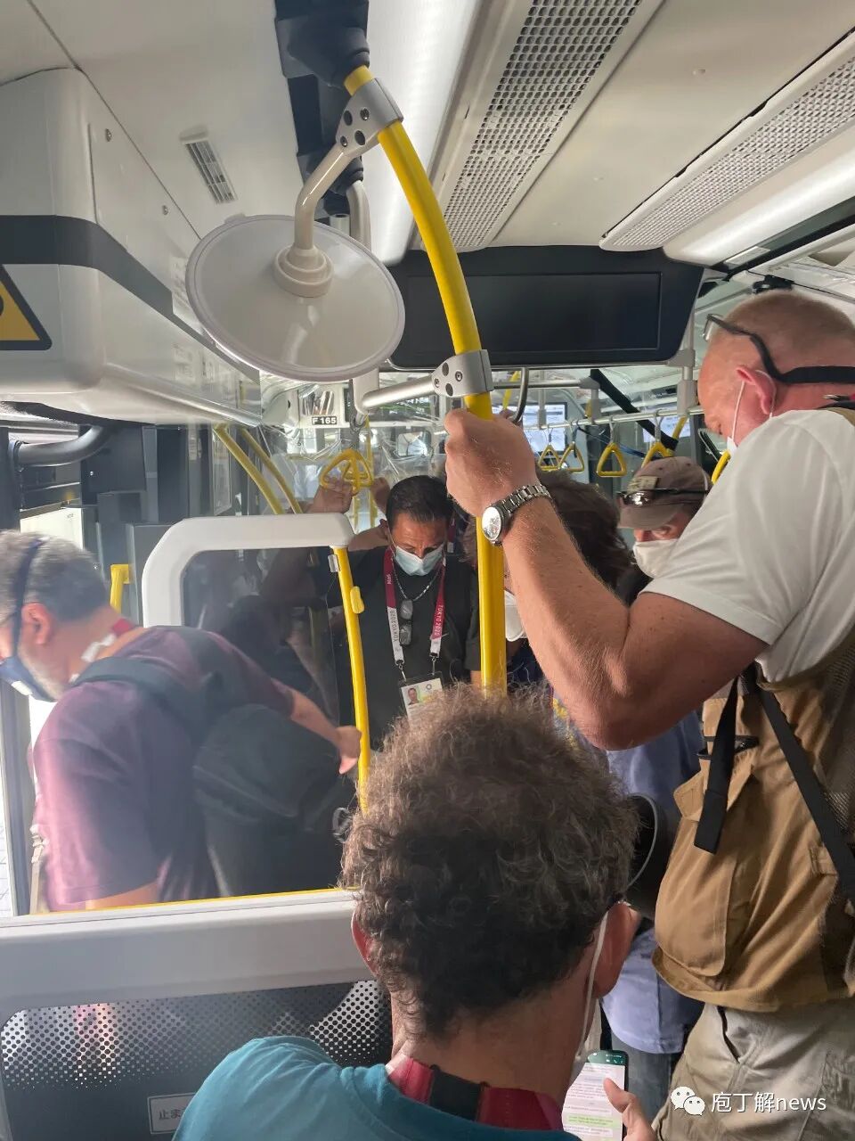 ▲班车上人员密密麻麻,时不时还会有人摘下口罩。只能时时做好防护。东京奥运会各个场馆相距甚远,很多比赛甚至晚十点开赛,结束发稿再转车回去,到达酒店往往凌晨两三点。更糟糕的是,有几次转车时我和几名同事还遭遇了台风,足足在暴雨中淋了一个多小时才来班车,如果第二天一早还有比赛,那就五六点起来。大家开玩笑地说,这是在东京“上了一个月夜班还不能倒休”。![]()
