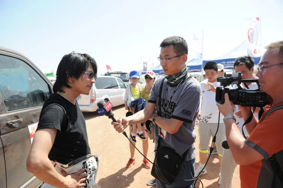 ▲2015年7月,记者采访中国汽车拉力锦标赛张掖站参赛选手韩寒。杨艳敏 摄