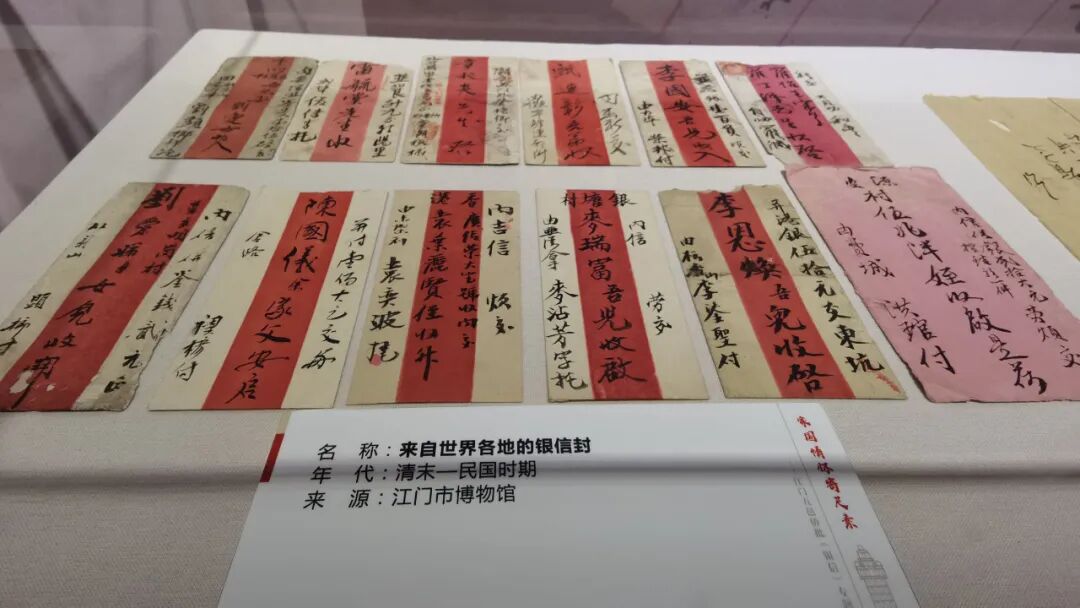 ▲“江门五邑侨批(银信)专题展”上展出的银信。 本文作者 摄