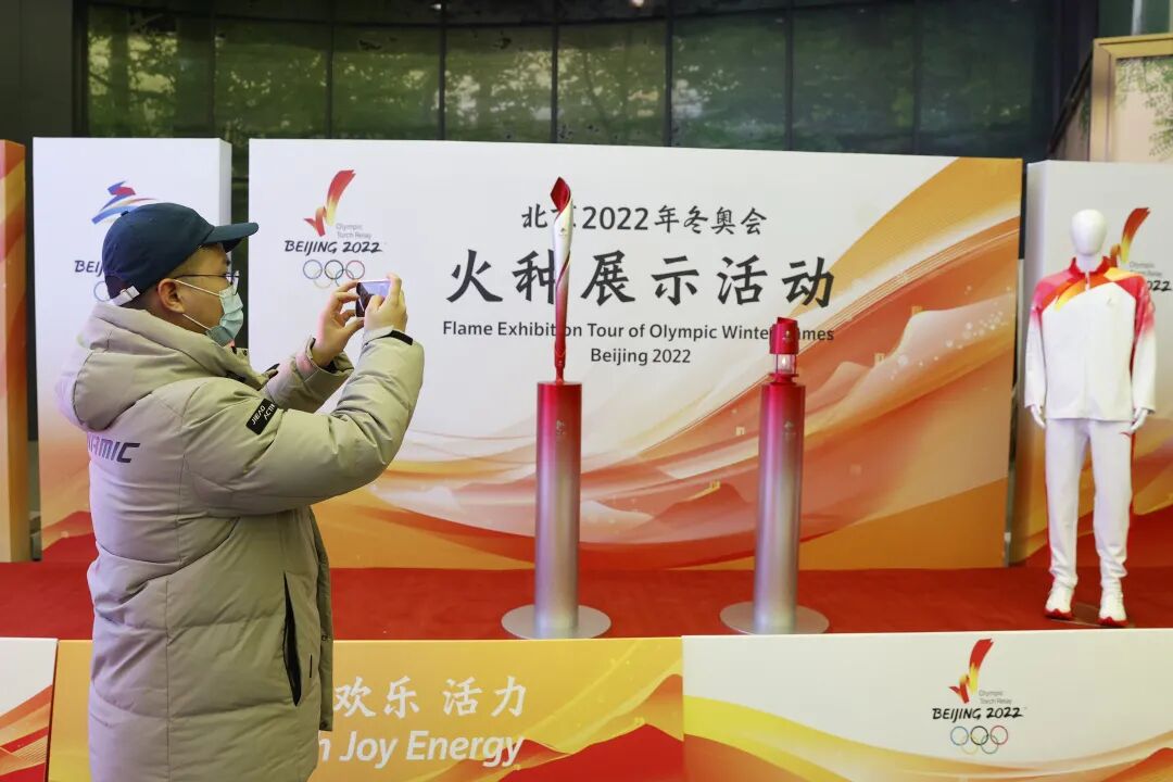 ▲陈杭在位于北京市延庆区的世园公园参加北京2022年冬奥会火种展示活动