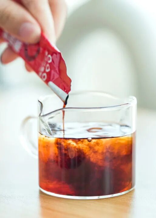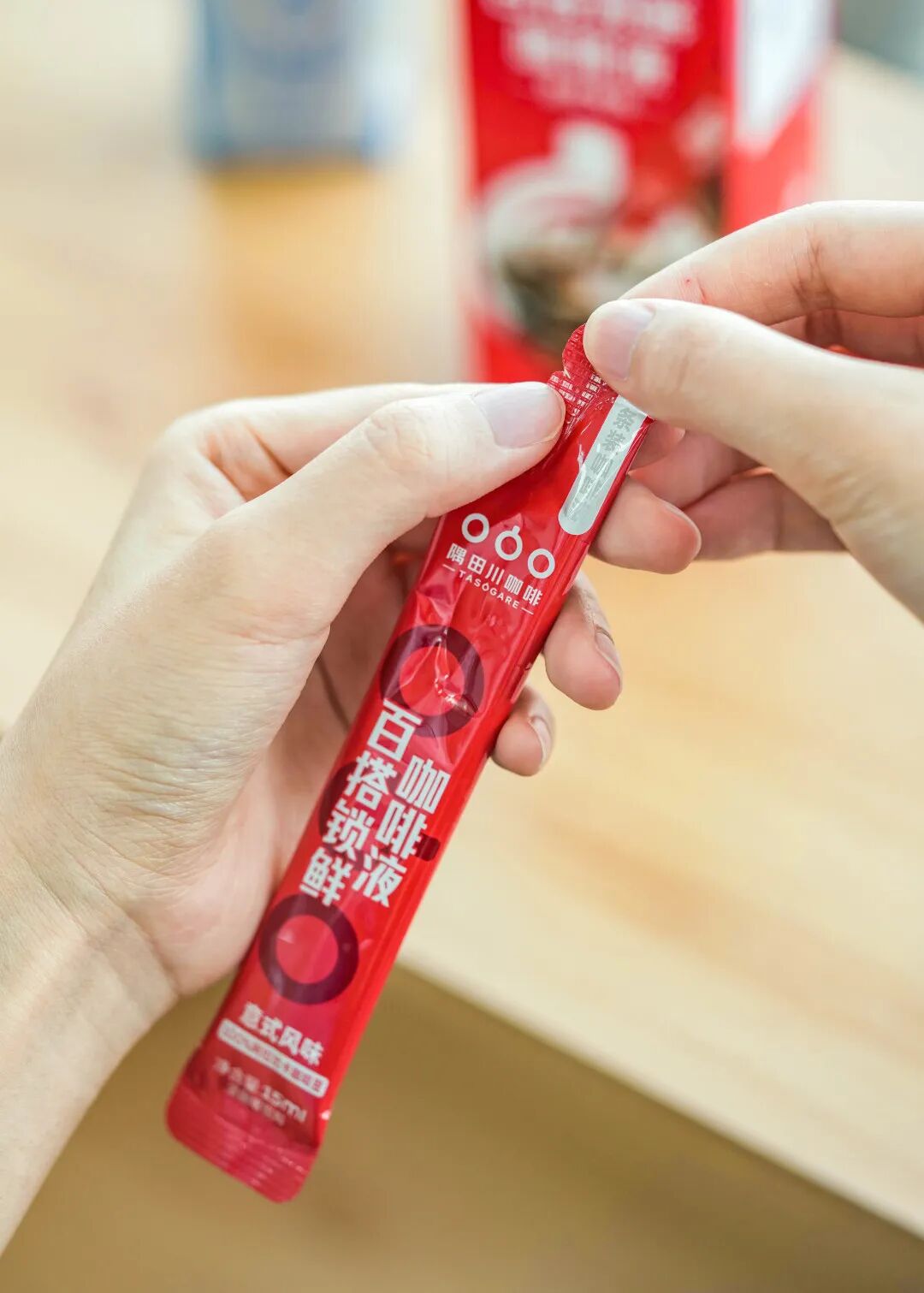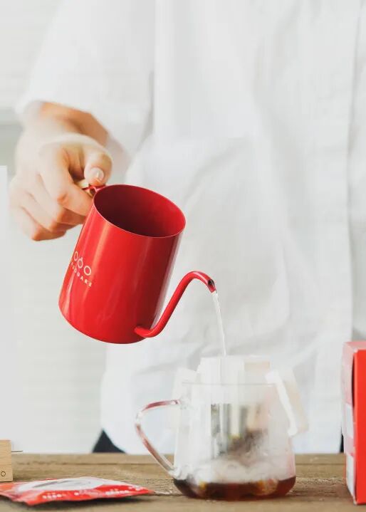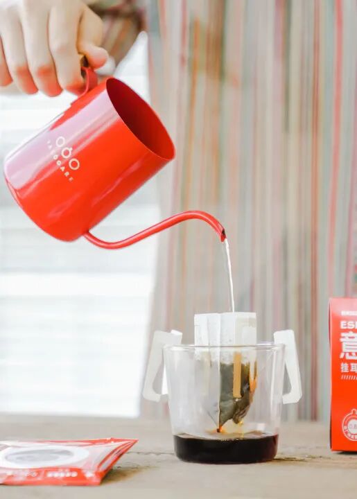 加入用少量热水冲泡的小红袋挂耳咖啡。