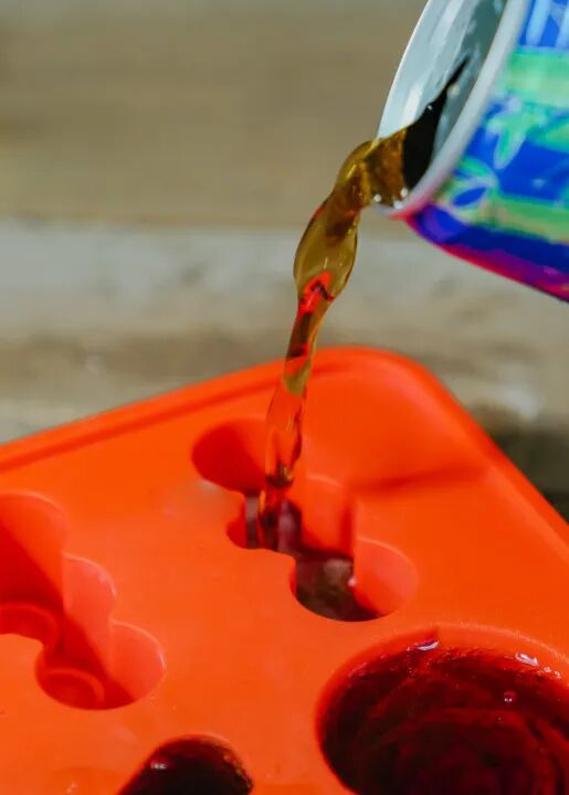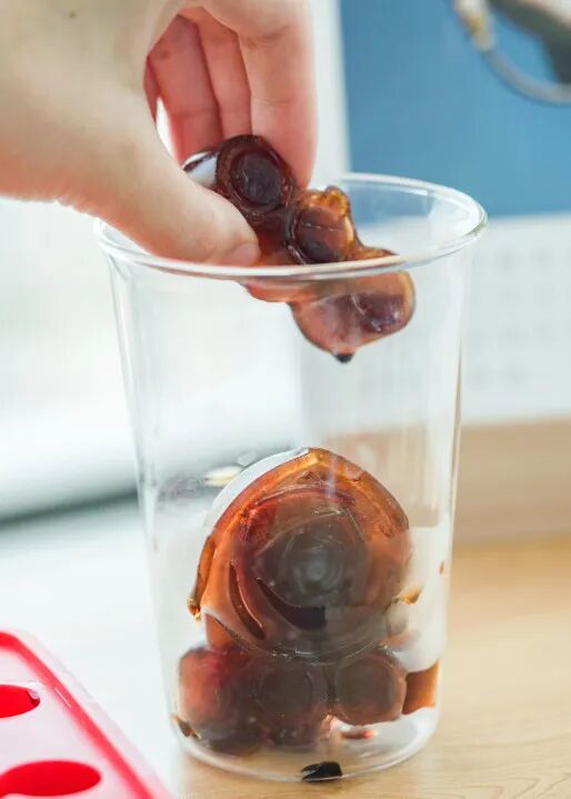 小红条加水,倒入心动冰格冰冻咖啡冰。