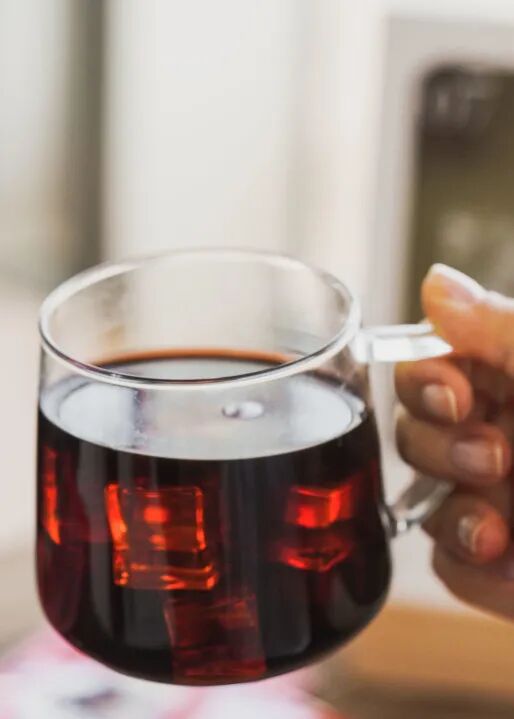 小红条加水变美式,放入可乐冰(及青柠片),让属于汽水的口感慢慢渗透到冰美式中。