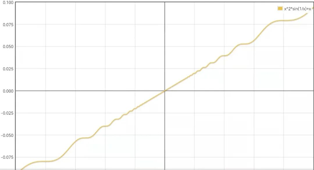 它在x=0处导数大于0,但是在x=0的任何邻域内函数都是振荡的,不存在A选项所说的在邻域内单调递增。所以正确答案应该选C。