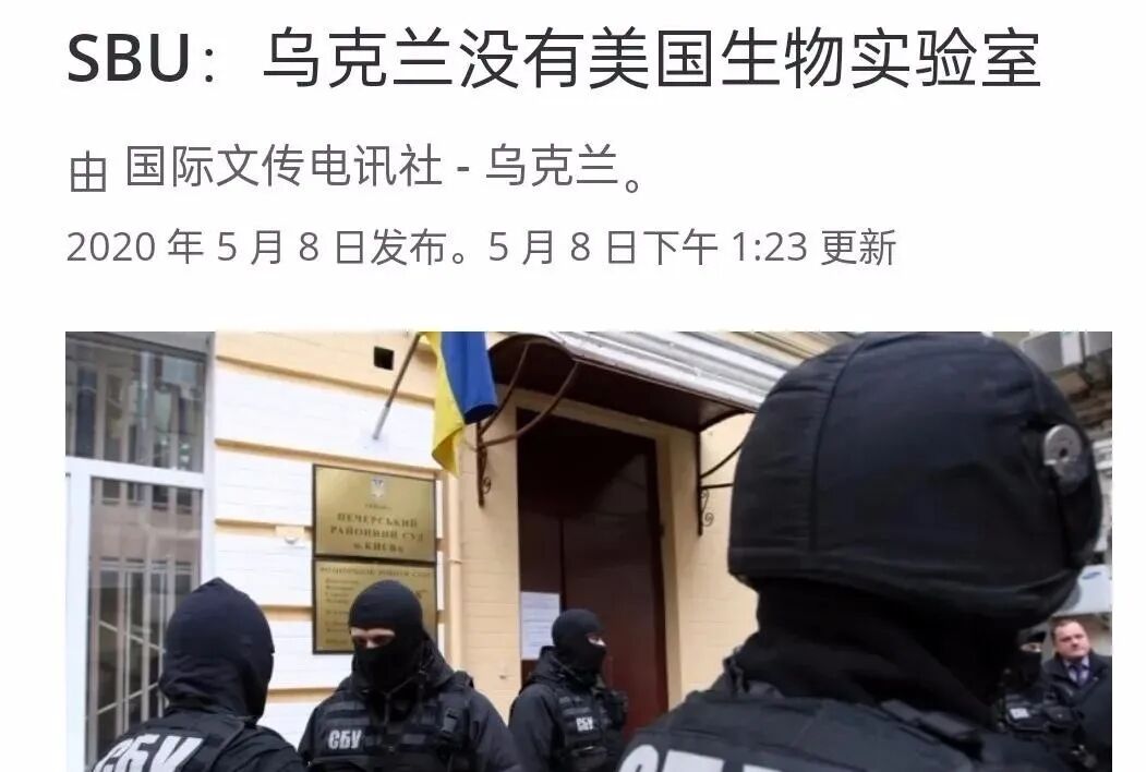 实际上,过去几年里,关于美国在乌克兰是否设有生物实验室、生物实验室是否安全等质疑,俄罗斯与美国的争论一直存在。而一向霸道的美国,面对这一话题却只有招架之力。为了配合美国回击俄罗斯的指控,2020年时,乌克兰官方直接“现身说法”。乌克兰安全局 (SBU) 称,没有外国生物实验室在乌克兰运营。