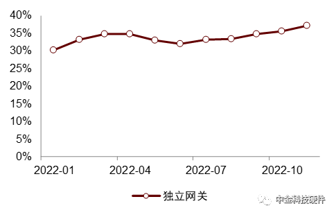 图表4:独立网关搭载量(标配)与渗透率