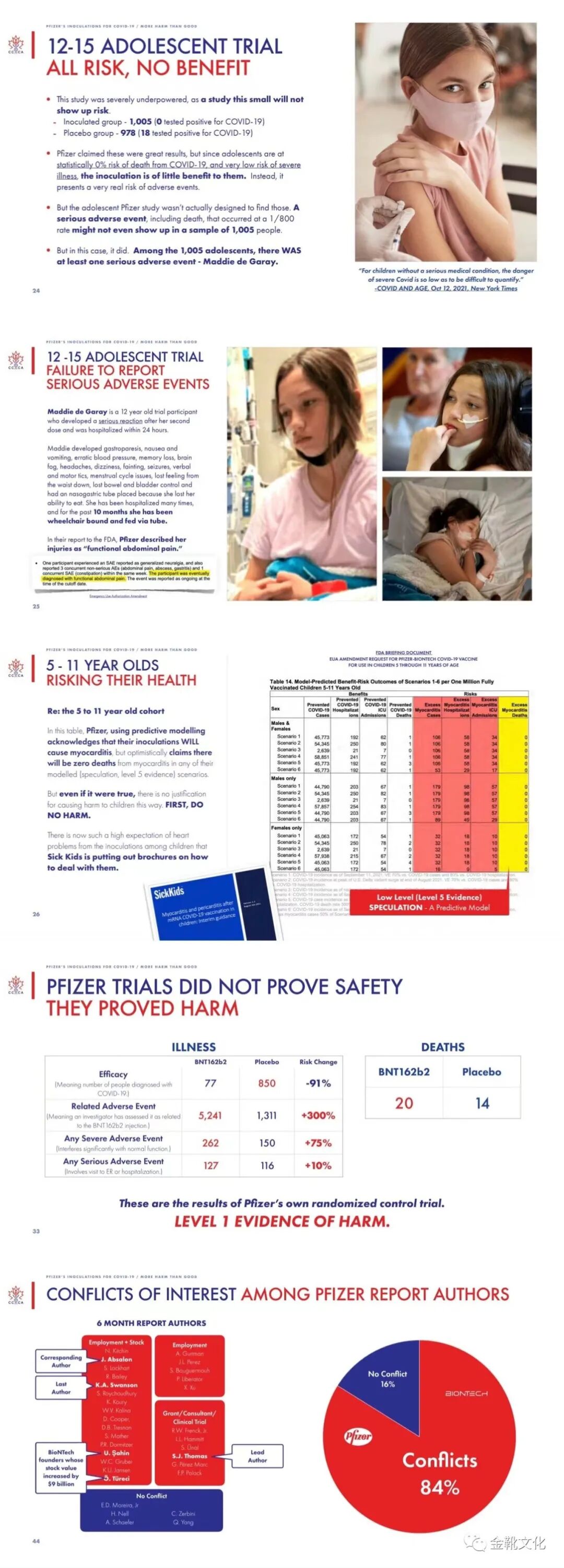 辉瑞之前六个月期的疫苗试验报告,其起草者中84%的作者存在利益冲突问题,或在辉瑞供职,或为辉瑞持股人,或获得过辉瑞的捐赠,或是辉瑞的在聘顾问。