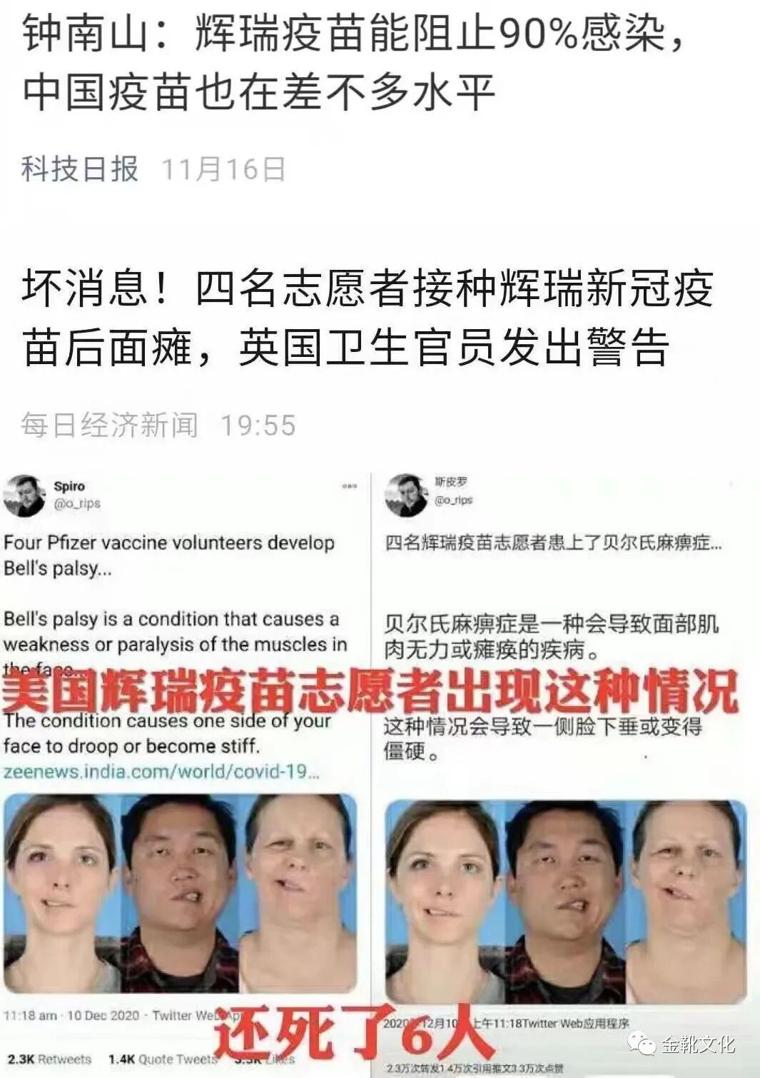 当时在辉瑞新冠疫苗注射的第三期志愿者中,四位志愿者出现了贝尔氏麻痹症(面瘫),《英国医学杂志》随后发表的一份报告也引发关注:有多名负责疫苗三期试验的人员指认,美国辉瑞公司的新冠疫苗在研发过程中存在伪造实验数据、实验人员操作不规范等严重问题,但向上级汇报问题后却被无视。