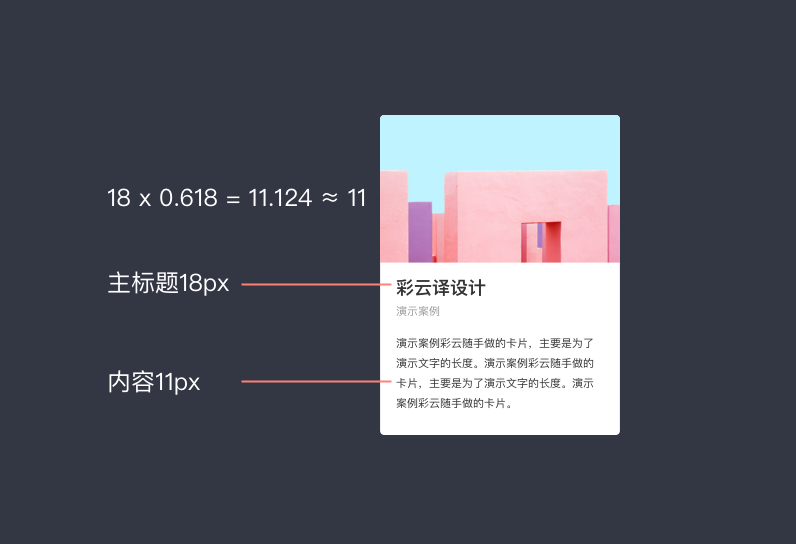 其实这张卡片的设计中,我也用到了黄金比例来指导自己的设计,方便快速确定文字比例关系。