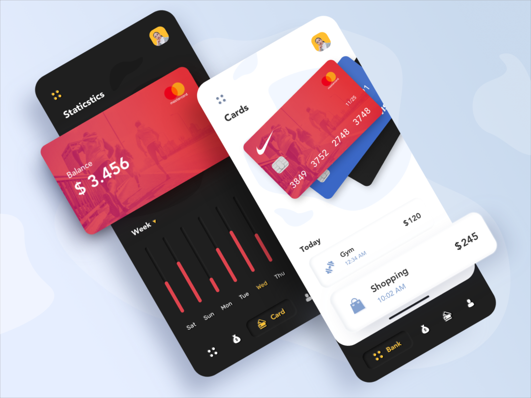 来源:https://dribbble.com/shots/10498737-Dark-Bank-Application-Design