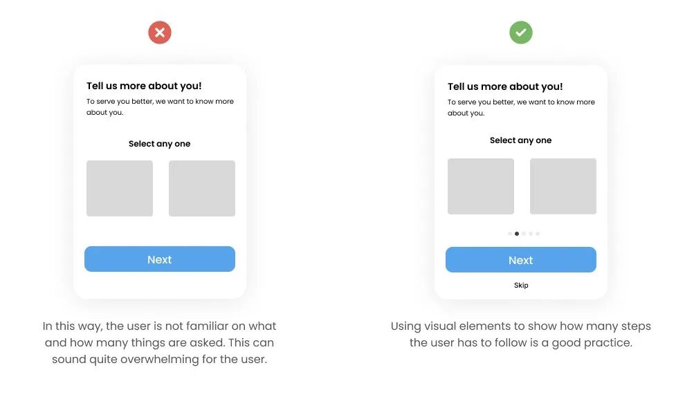 App的新手引导决定了用户第一次体验产品时的感受。在设计的时候,试着公开需要哪些具体步骤,增加”跳过“和前后移动查看的能力对新用户来说非常重要。
