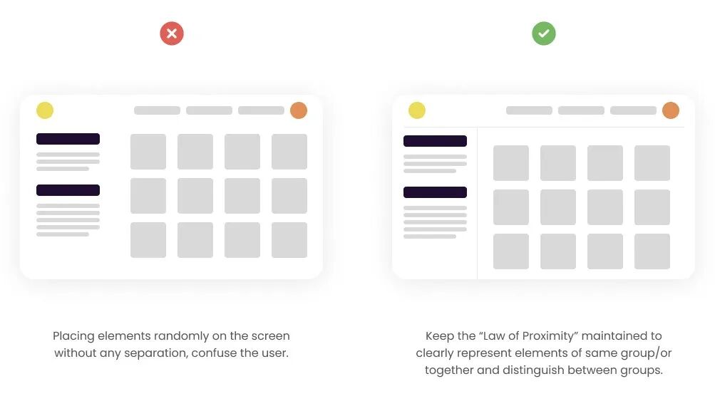 ”邻近的物体往往被视为是同一组内容“。有时候为了把内容区分开的更清晰,尝试用线对相关内容进行分组。(彩云注:其实有留白和不同颜色做区分也是可以的,建议根据自己的设计风格和具体内容来定)
