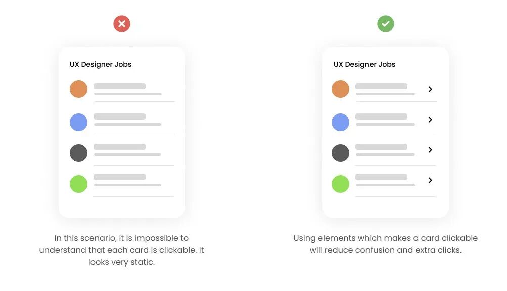 在设计任何体验时,点击次数都是非常重要的指标。统计用户需要点击多少次才能完成他的目标,额外的点击会减慢整个操作过程。简化过程,自然体验就会更好,所以尽可能的减少点击次数。(彩云注:下面的案例,增加可点击符号也可以减少用户思考的时间。)