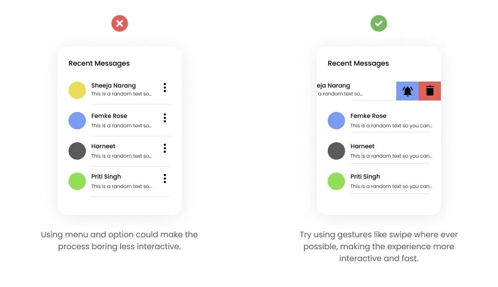 轻敲和点击有时候很累人,可能不如使用滑动、拖拽等手势操作,这些操作会让界面更简洁并且也能顺利地完成既定任务。