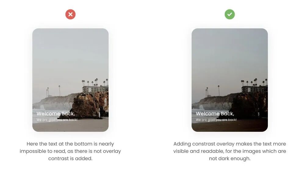 许多网站和App都是用图片驱动的,但在图片上直接增加文字内容有时候会被淹没掉。在图片上增加一个叠加层可以提升内容的可读性。