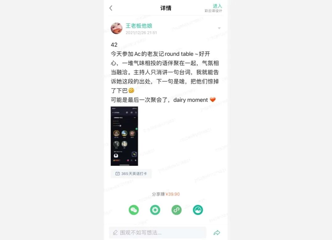 我知道有些人观望一整年了,犹豫要不要加入彩云的社群。今天就不要犹豫错过机会了,正如老板娘写的那样,星球中的氛围非常好,重点是真的能学到东西获得进步!很多老星友们在1年到期后都接着续费了,足以说明这里值得来。
