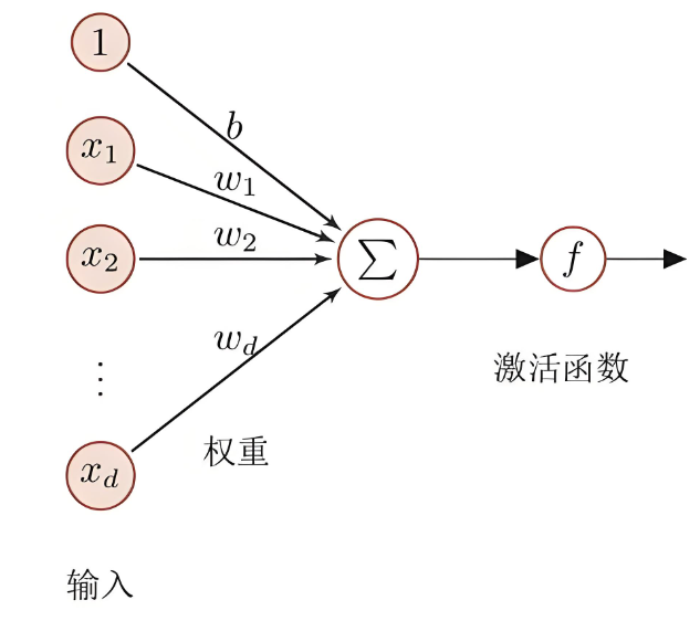 这个结果会被输入到激活函数 f 中,得到神经元的输出