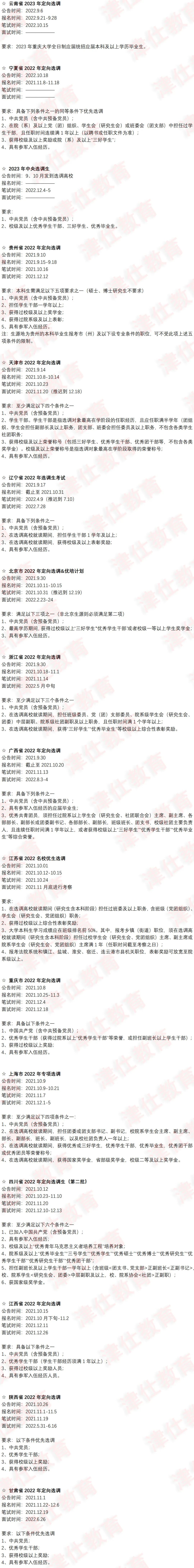 功能介绍 针对985、211及海内外高校每日更新分享关于各地区定向选调生、优选计划等讯息!