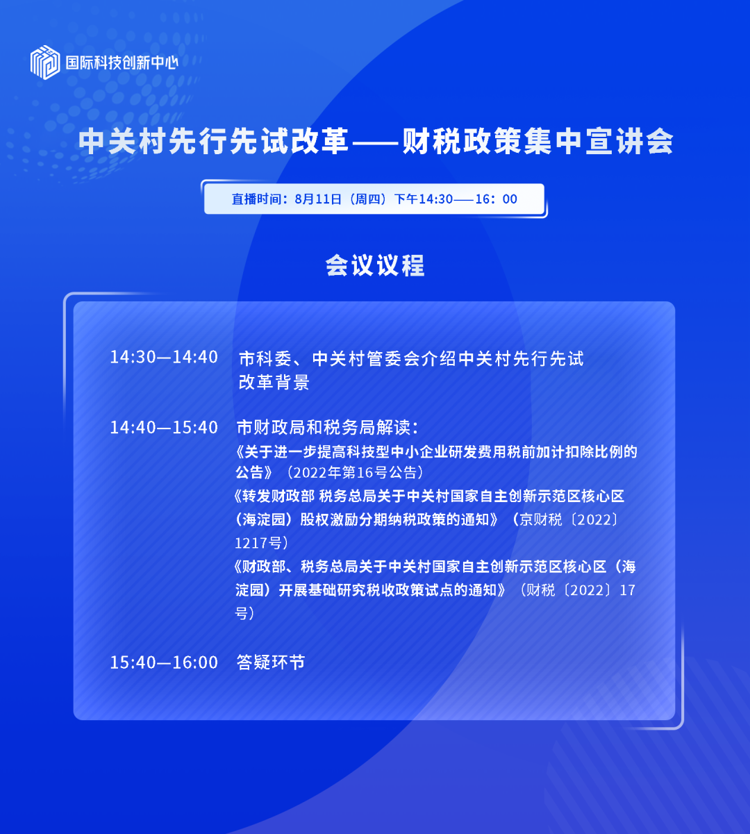为深入贯彻落实市委市政府关于加快推动中关村先行先试改革配套政策落地见效的部署,加快打造世界领先科技园区,全力支撑北京国际科技创新中心建设,北京市科委、中关村管委会会同北京市财政局、北京市税务局举办中关村先行先试改革财税政策宣讲会。