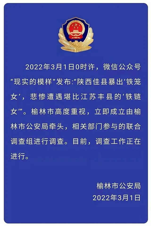 3月1日零点,有自媒体发布了一段视频和文章,称陕西佳县一女子被锁在铁笼里,当成赚钱工具,疑似被虐待,悲惨遭遇堪比江苏丰县的“铁链女”,同时有网友反映该女子疑似2009年青海失踪的大学生。