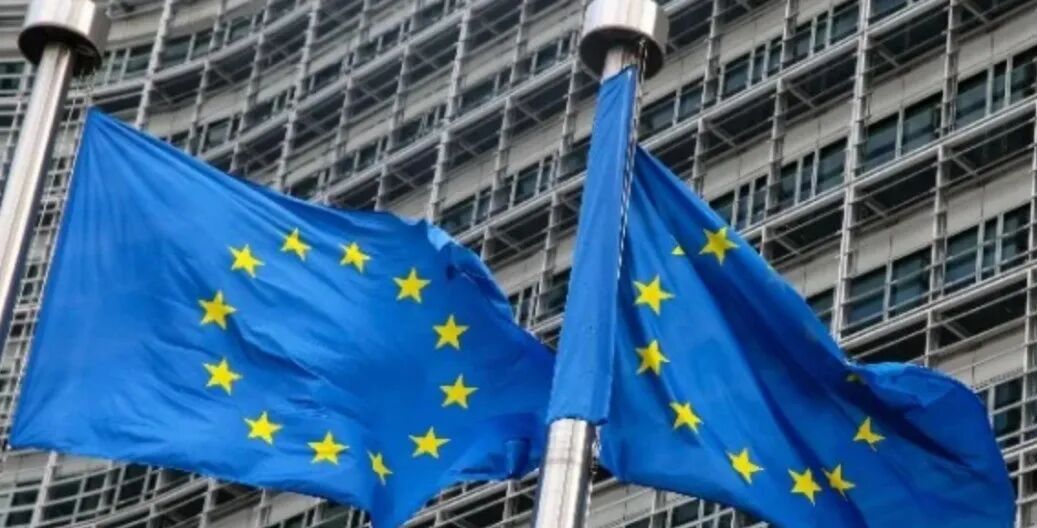 欧盟旗帜在欧盟委员会布鲁塞尔总部外飘扬。