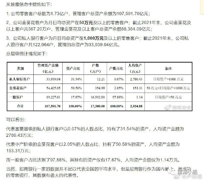 最新的招行年报来看,目前不是20%的人掌握80%资产,