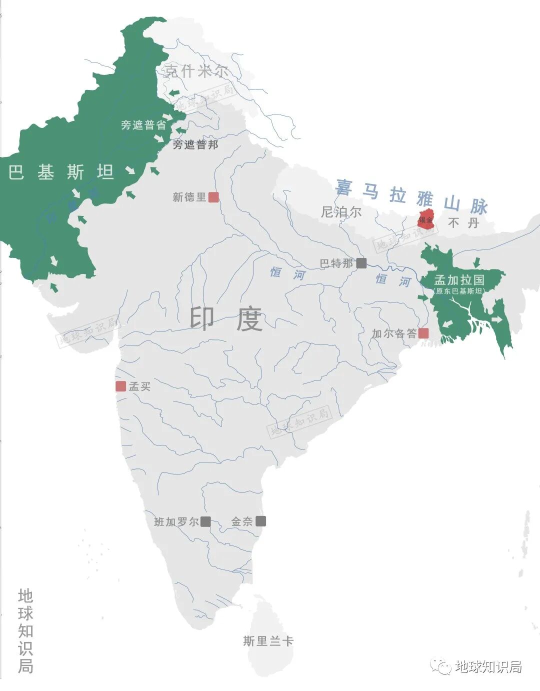 南亚总体上分成印度、巴基斯坦以及其他小国