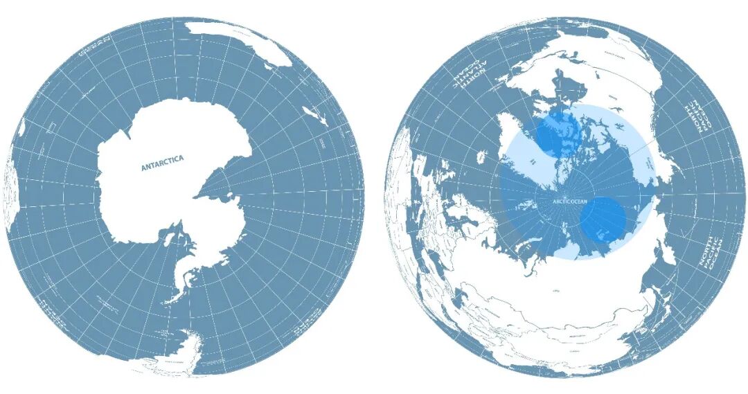 南北极都有极地涡旋,南极因为存在较为规则的南极大陆,而四周为海洋,所以南极的涡旋中心较为稳定,通常靠近南极点。而北极因为陆地分布不规律,北极点位于北冰洋中,而海陆热力差异又导致陆地在冬季时气温更低,所以北极涡旋也相对呈狭长状,中心分布于西伯利亚北部和巴芬岛上空两个区域。