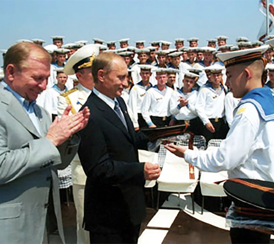 (2001年普京与乌克兰总统库奇马在黑海舰队的旗舰上)