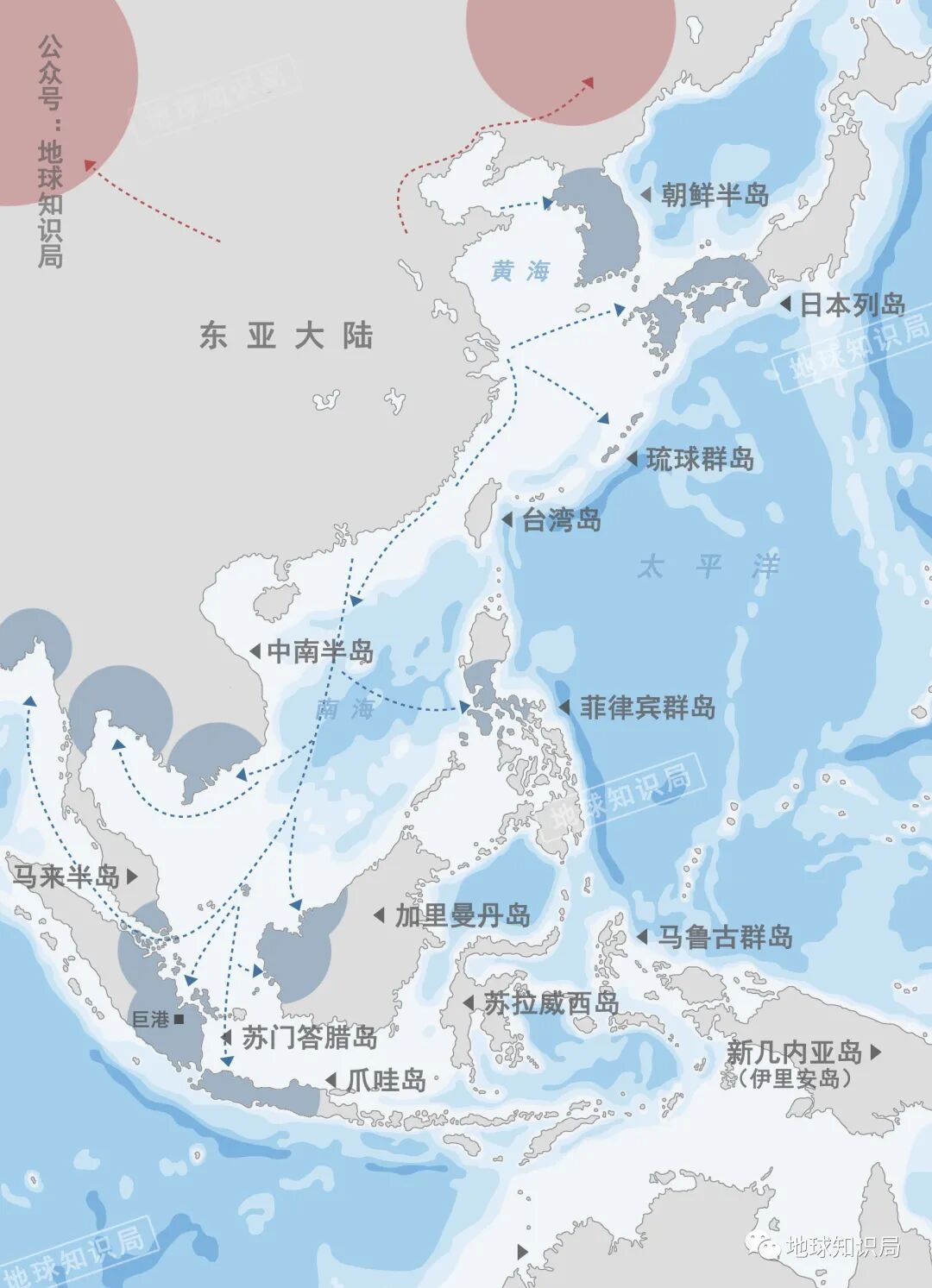 与马来半岛相隔不远,旁边就是马六甲海峡▼