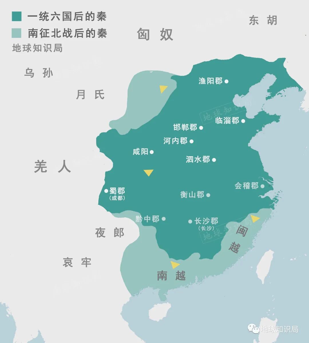 虽然秦帝国在并六国后名义上又吞并了南方