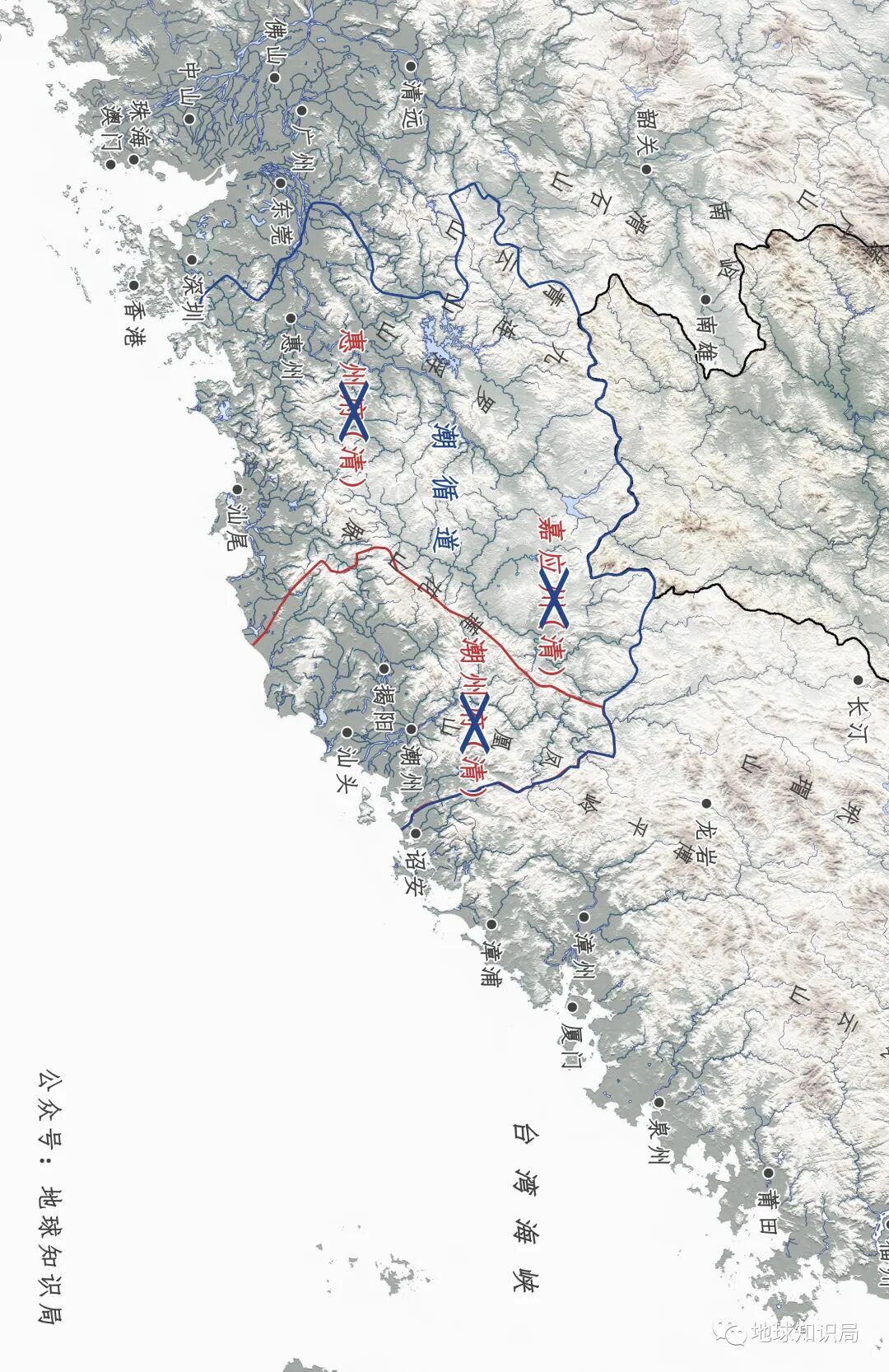这一现象的形成,还是粤东与闽南的地形所造就的。与闽南地区一样,潮汕也是一处在海洋与山脉之间的狭小区域。两地的陆上交通都不太便利,相比翻越大山去到粤东北和粤西,显然潮汕先民会与闽南人有着更多的交集。