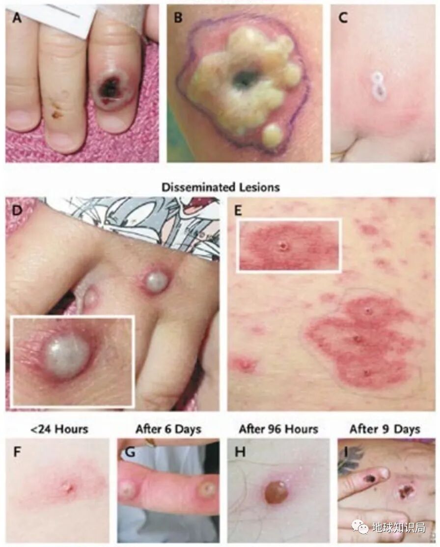 猴痘引发的皮损(滑动下图:nejm.org & CDC)▼