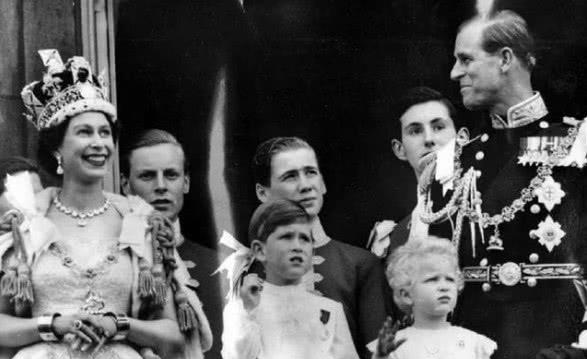 1954年,英国女王伊丽莎白二世在白金汉宫的阳台上向公众致敬。老照片中查尔斯还是个孩子,懵懂的眼神看着远方,大家的眼神都向远方望去,唯有菲利普亲王的眼睛深情的看着英国女王。那时的菲利普王子为了娶她,毅然放弃了希腊王室成员身份和希腊的王位继承权。为了守护英国女王,甘心在她身边当了70多年的侍卫。