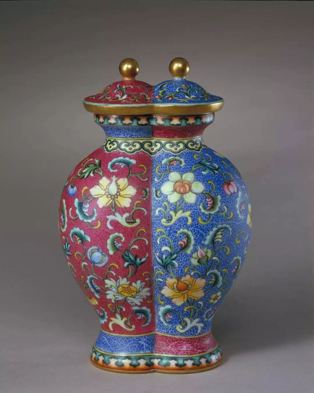 清乾隆料胎黄地画珐琅凤舞牡丹包袱瓶