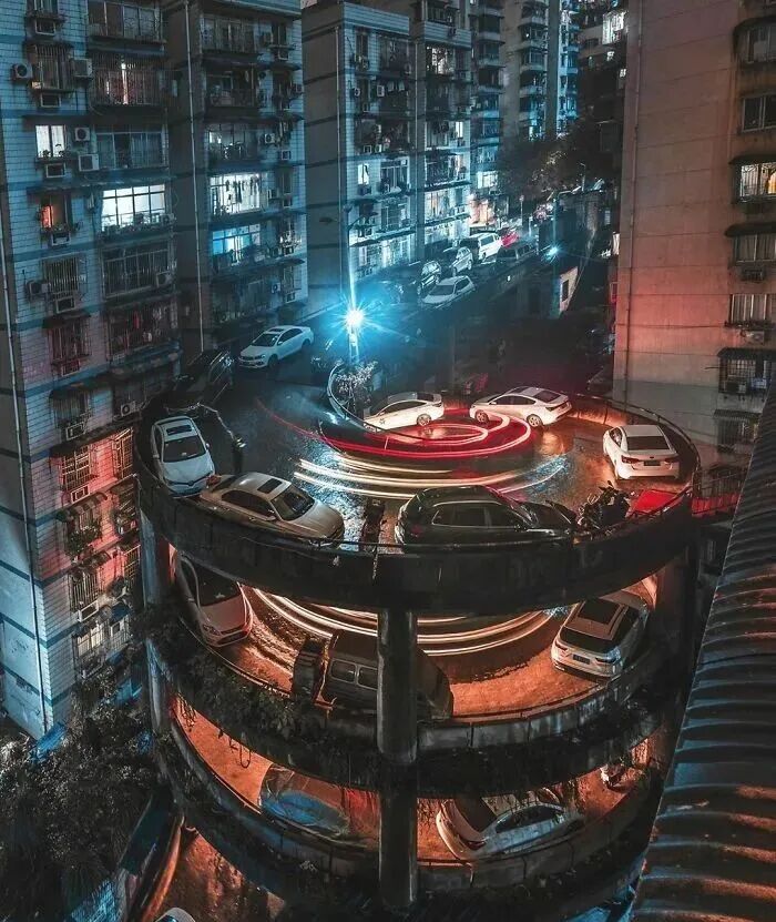 一开始我并没有被重庆的这张照片所困扰,但后来我看到了住宅楼顶上的阳光,意识到这还是白天……