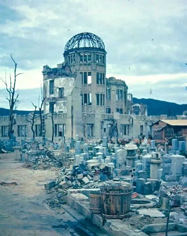 【原子弹爆炸圆顶屋】原子弹爆炸后,广岛市重建为“和平纪念都市”。最接近引爆位置的建筑物——广岛产业奖励馆——废墟,定名为“原子弹爆炸圆顶屋”,为广岛和平纪念公园的一部分。市厅持续提倡废除核武器,更主张世界和平。1968年以来,各地若有核武引爆,他们都会去抗议。