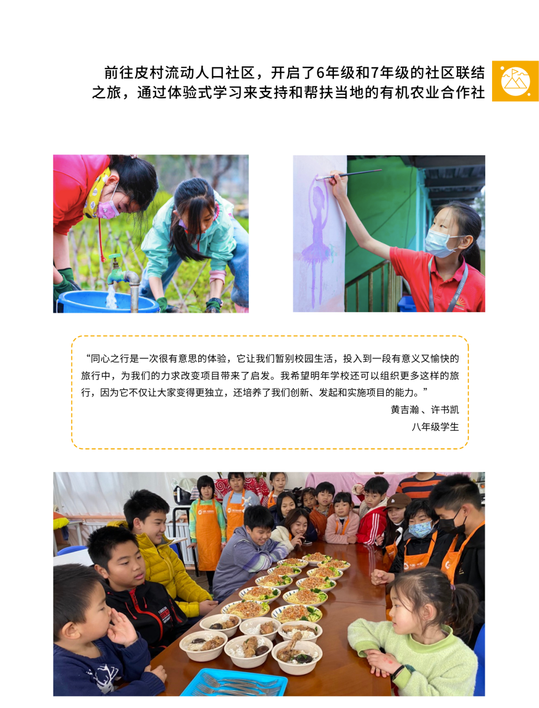 课堂的学习非常重要,然而学生要获取更多的养分,就要时不时走到校园围墙之外,汲取不一样的新知。启明星组织了前往京郊、关注社区联结的体验式旅行。这样的学习能够帮助学生更好地理解身边社区所面临的挑战,甚至对解决问题有所贡献。