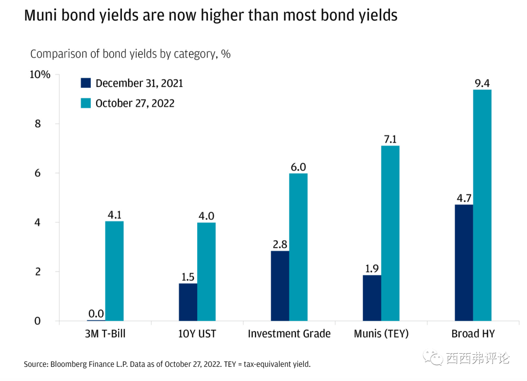 因为地方政府债务有风险,美国地方政府债券的收益率,也自然会高于国债水平。