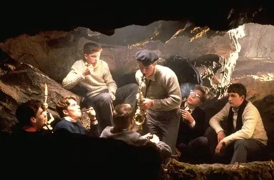 基汀带着学生们在校史楼内聆听死亡的声音,反思生的意义;让男生们在绿茵场上宣读自己的理想;鼓励学生站在课桌上,用新的视角俯瞰世界。他自由发散式的哲学思维让学生内心产生强烈的共鸣,一些勇敢的学生毫不犹豫地重建秘密社团“死亡诗社”,在山洞里击节而歌!